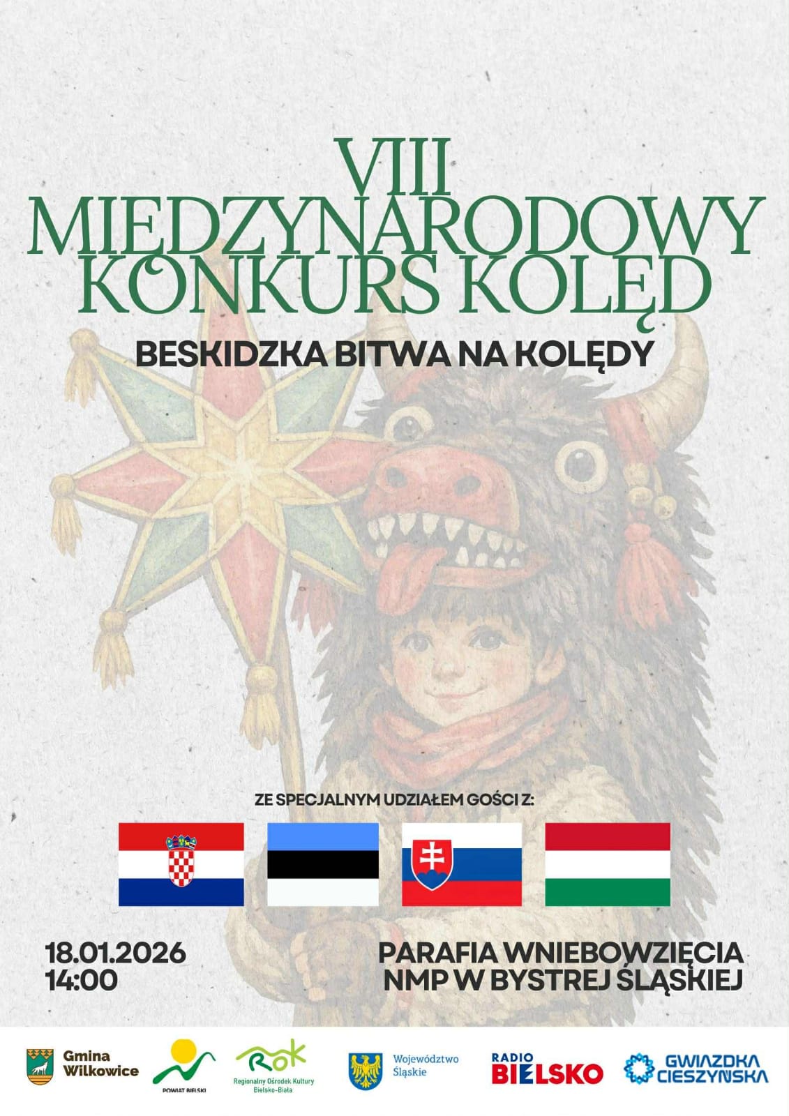 Zaproszenie na VIII Międzynarodowy Konkurs Kolęd „Beskidzka Bitwa na kolędy” By Aleksander Jasiński 10 stycznia, 2026
